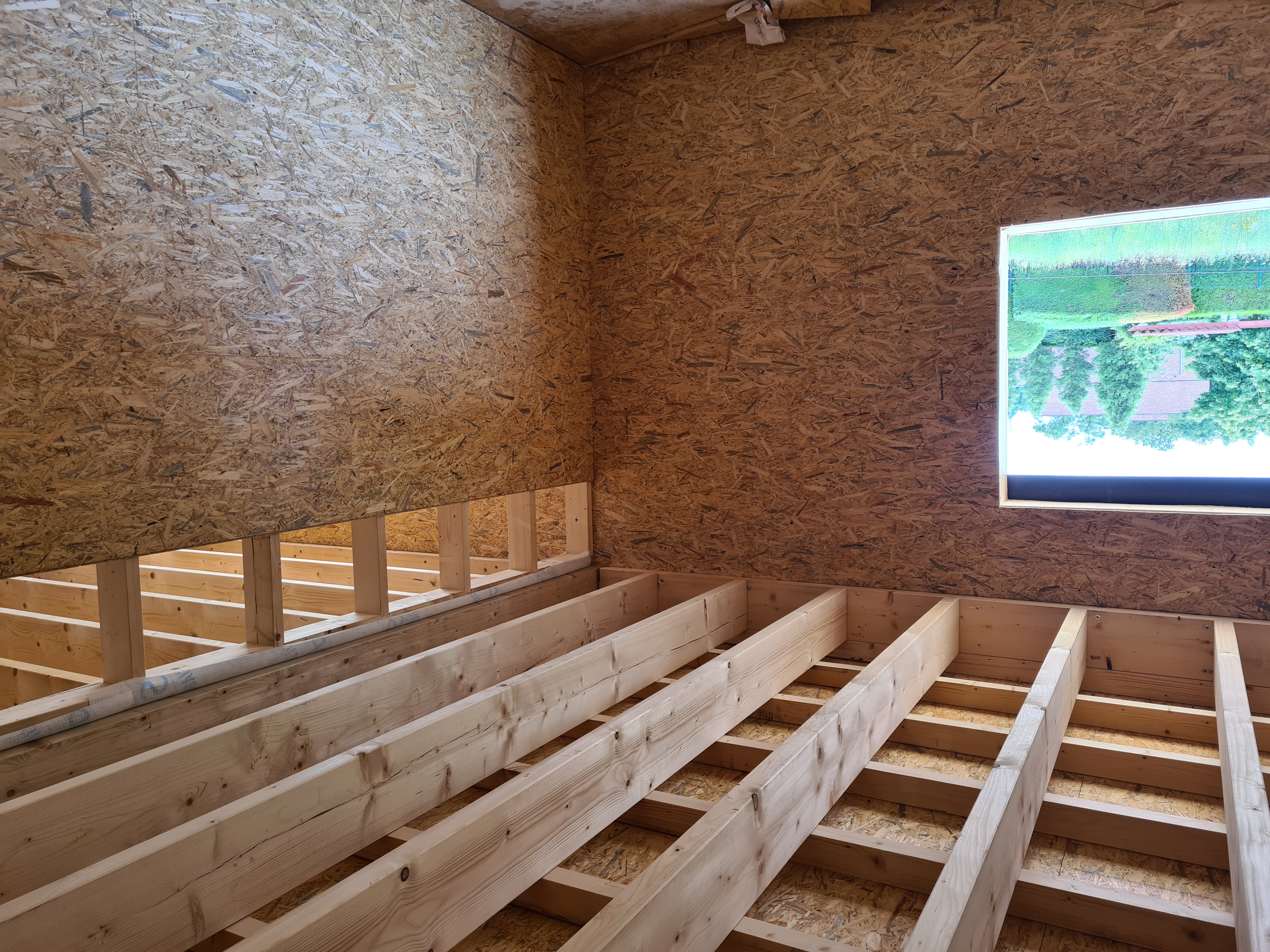 We werken met massiefbouw in grenen voor een sterke, stabiele en duurzame draagstructuur. Alle wanden worden nauwkeurig opgebouwd in ons eigen atelier en ter plaatse geplaatst, inclusief de nodige isolatieopbouw en wind- en waterdichting.