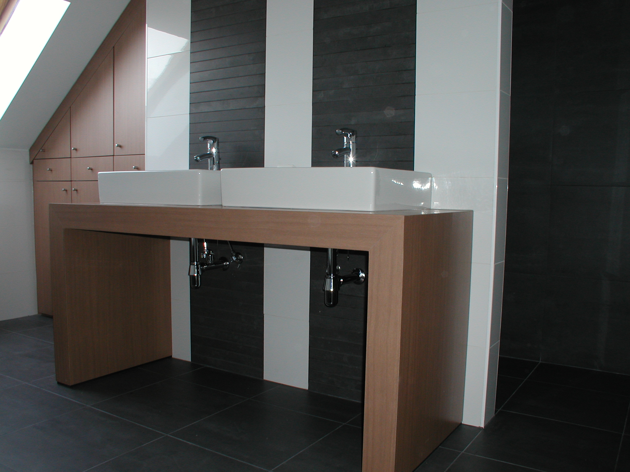 We ontwerpen en maken ook badkamermeubels op maat: van wastafelmeubels en kolomkasten tot ingemaakte opbergruimte. Met vochtbestendige materialen en een strakke afwerking zorgen we voor duurzame meubels die perfect passen bij jouw stijl en ruimte.