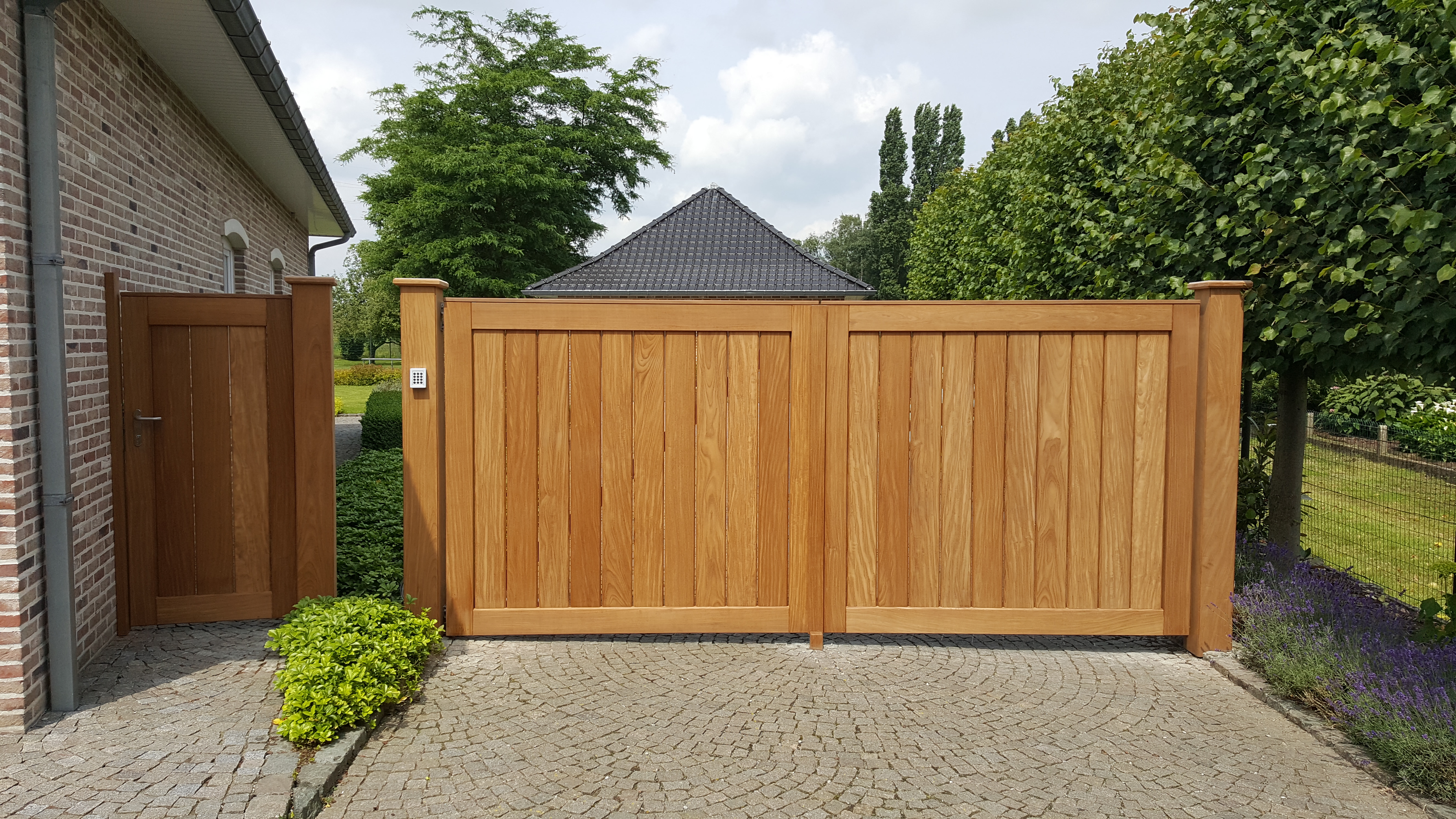 Deze traditionele tuinpoort bestaat uit één of twee draaivleugels die naar binnen of buiten openen. Dankzij hun veelzijdige ontwerp passen ze zowel bij een landelijke of pastorijstijl als bij een moderne, strakke stijl. Perfect voor bredere doorgangen en een stijlvolle, elegante toegang tot je tuin.