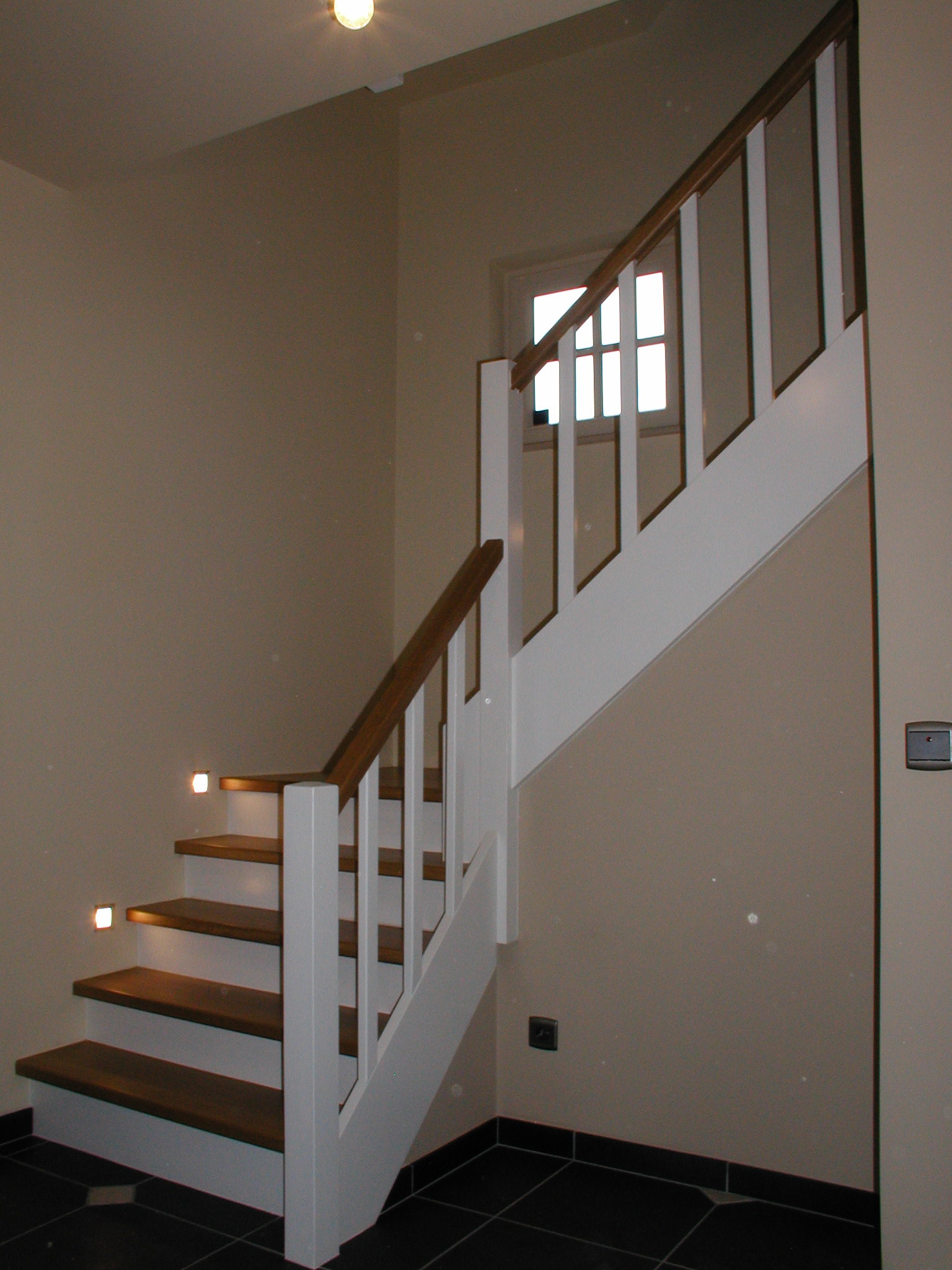 Discrete LED-verlichting in treden of leuningen, trapkasten op maat of een kindvriendelijk aanzetstuk. Alles in dezelfde hoogwaardige stijl.