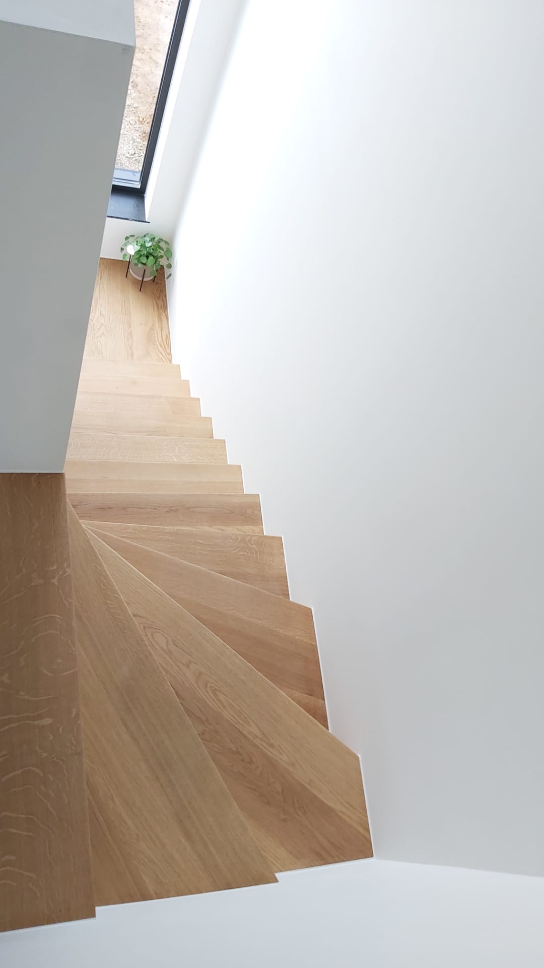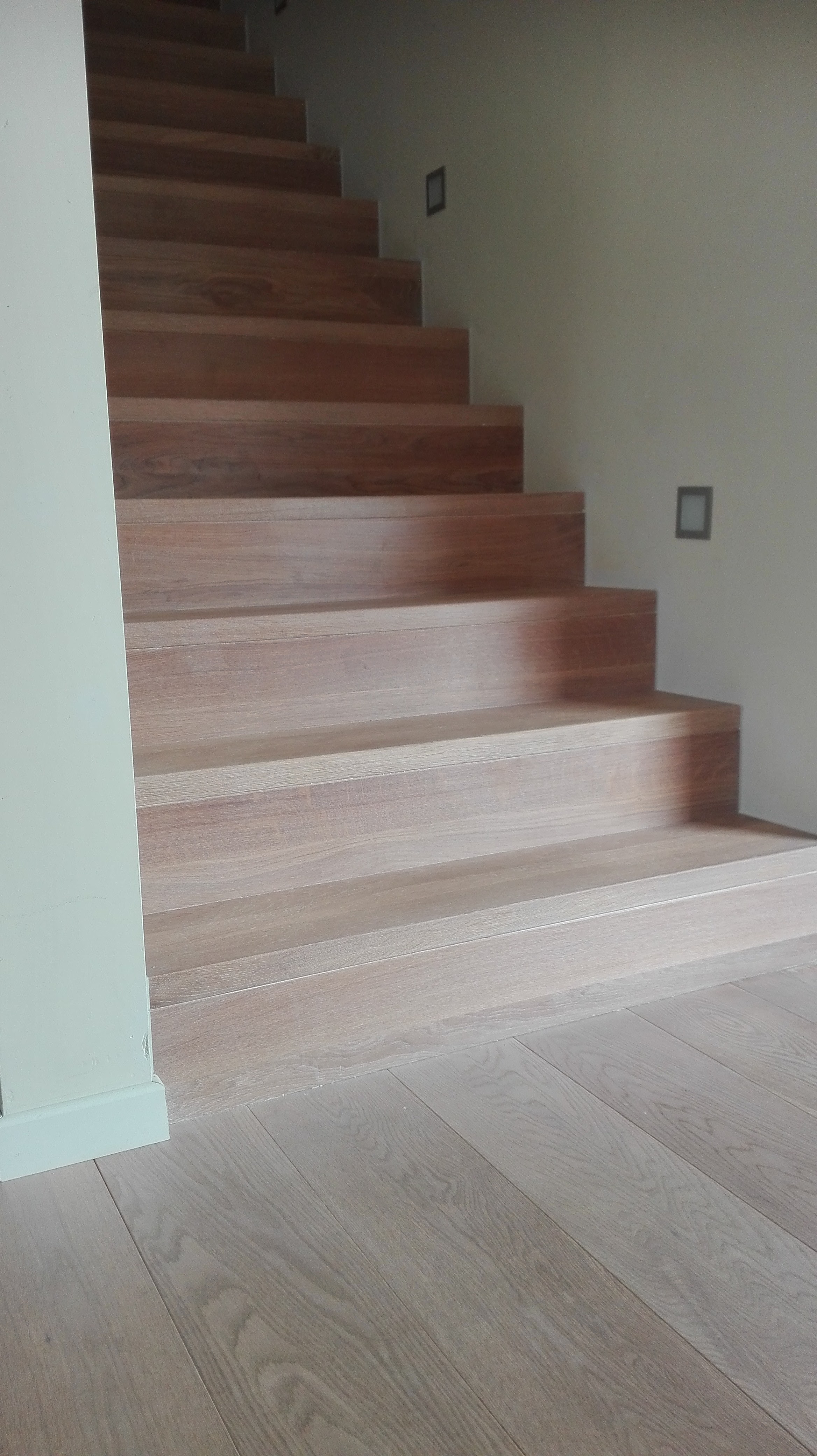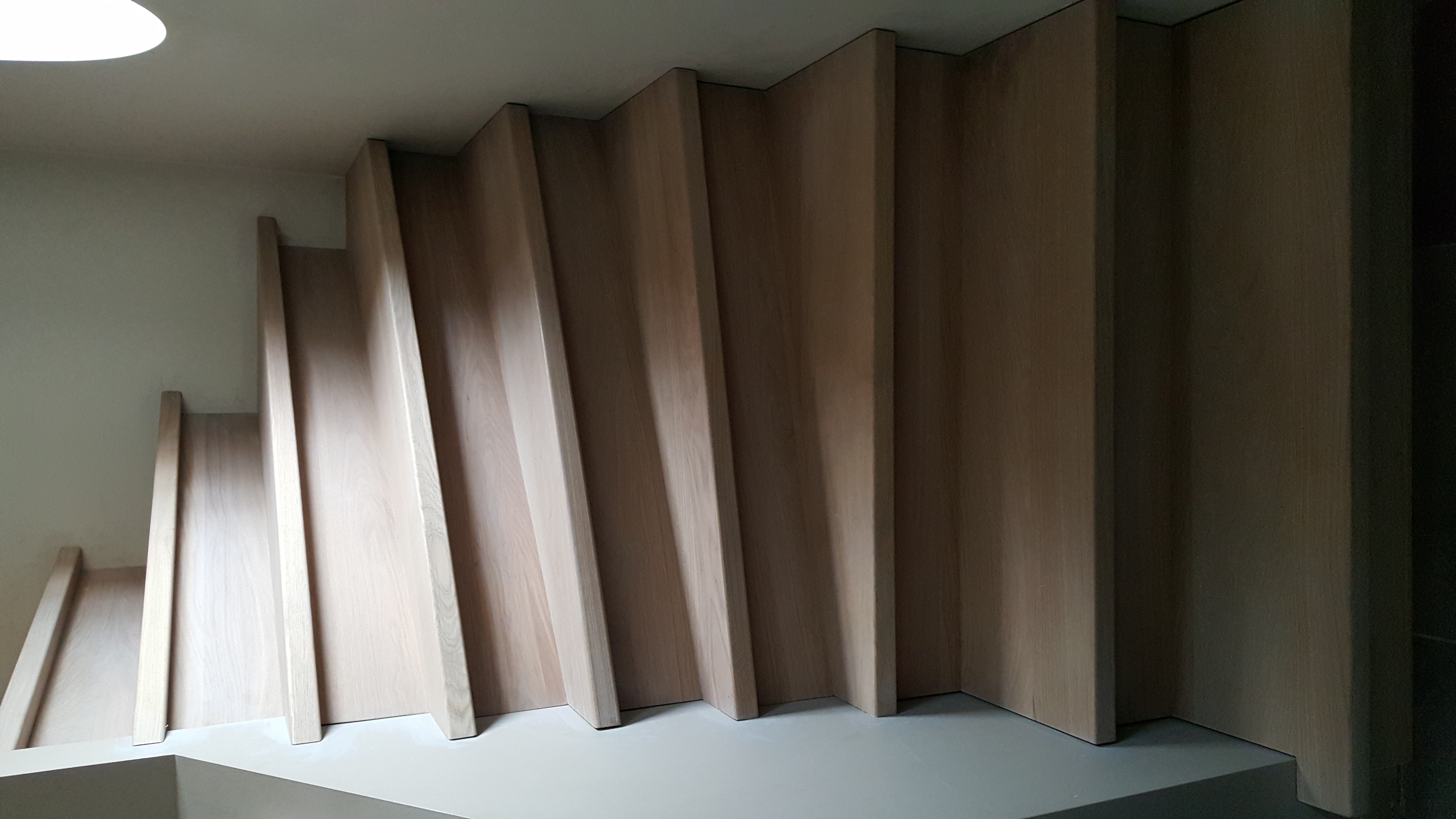We werken met verstekverbindingen, onzichtbare bevestigingen en zachte afrondingen waar nodig. De afwerking – olie of lak – is slijtvast, onderhoudsvriendelijk en kan bij schade lokaal hersteld worden. Zo blijft je trap jarenlang even mooi als op dag één.